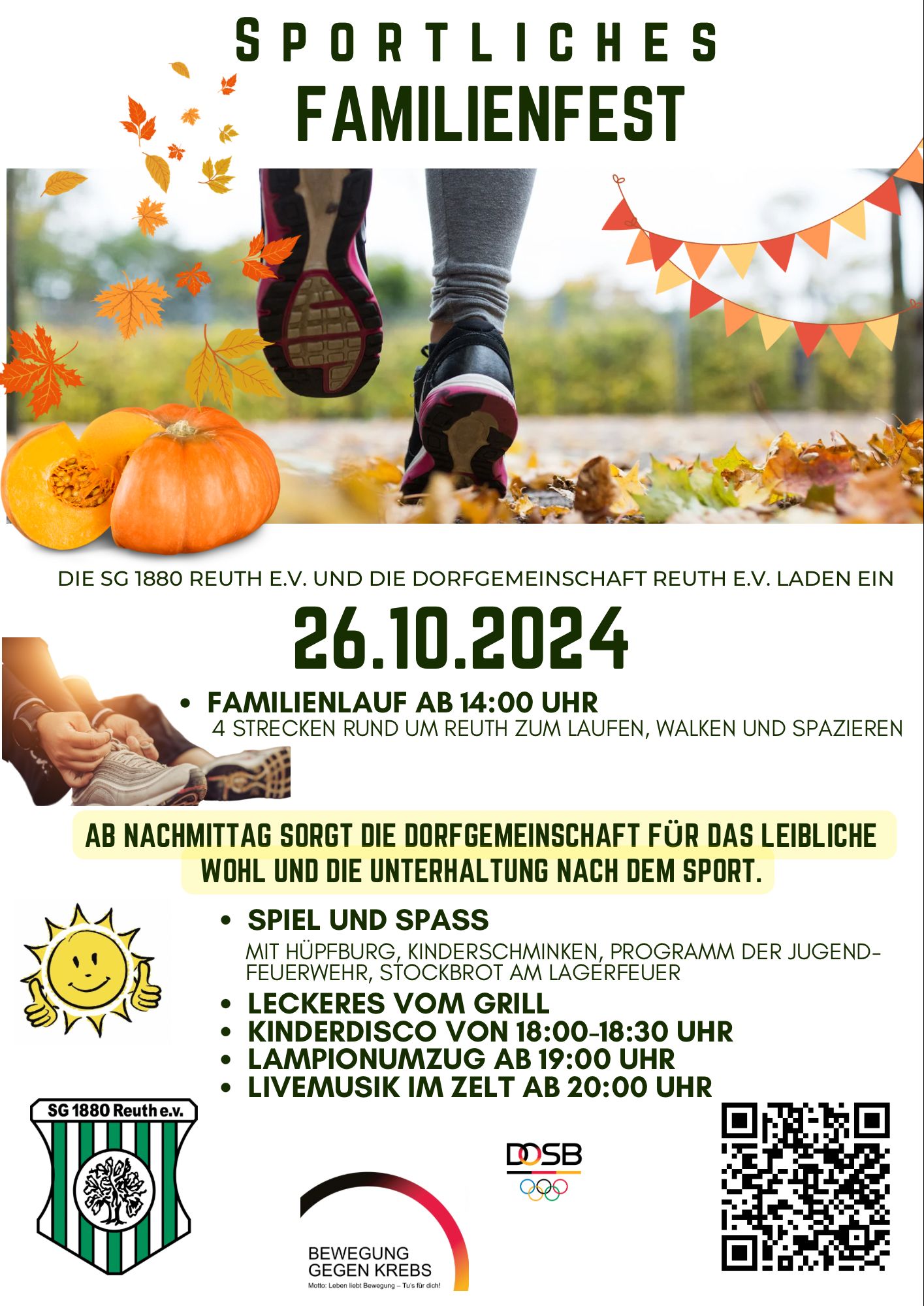 Gemeinsam mit der SG1880Reuth musste das sportliche Familienfest wetterbedingt vom 1.Juni auf den 26.10. verschoben werden. Ein tolles Herbstfest ist dabei entstanden.